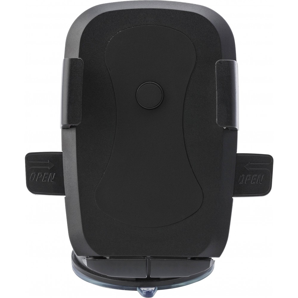 Állítható mobiltelefon-tartó, mely tapadókoronggal rögzíthető az autó szélvédőjére vagy műszerfalára. A telefon rögzítésére a két oldalsó kar szolgál, melyek max. 8,1 cm szélesre állíthatóak. A gomb megnyomásával a két befogó a legszűkebb állapotba áll vissza. Anyaga: ABS műanyag és gumi. Emblémázás: Tamponnyomás