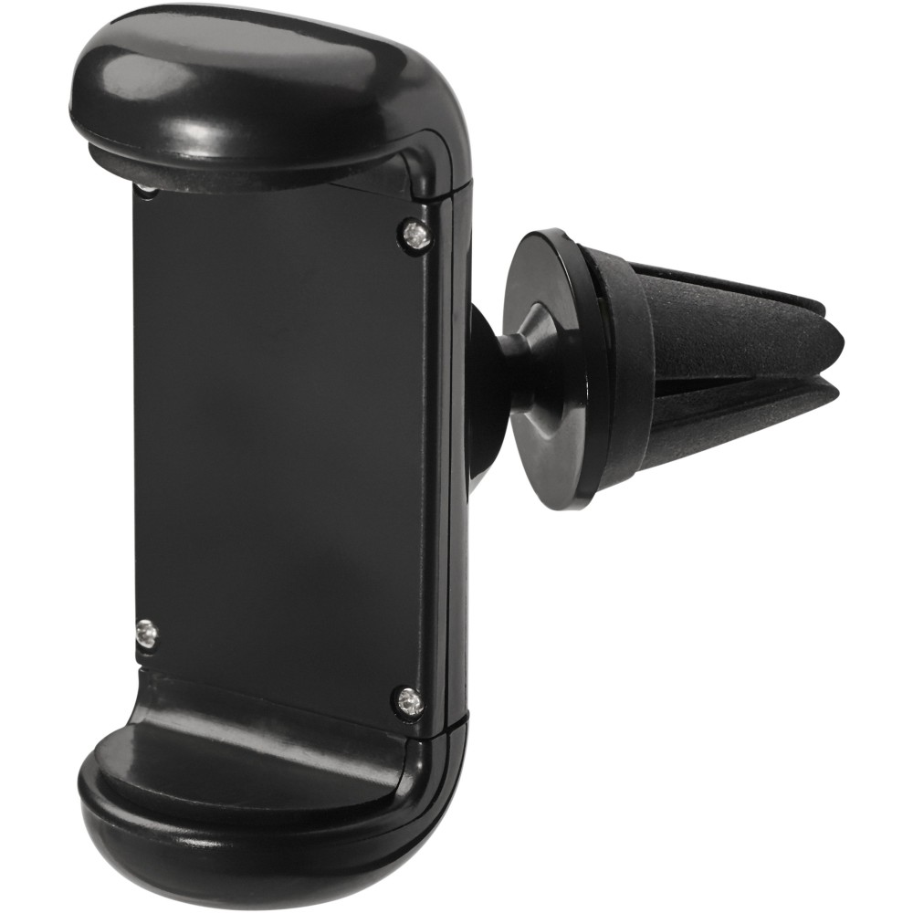 Telefontartó, amely az autó műszerfalának szellőzőnyílására rögzíthető, és biztonságos helyzetben tartja a mobiltelefont. Minden telefonnal kompatibilis. 360 fokban elforgatható. Emblémázás: Tamponnyomás