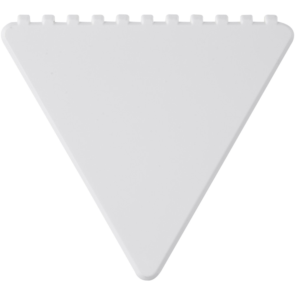 Háromszög alakú jégkaparó nagy emblémázható felülettel. Az Egyesült Királyságban készült újrahasznosított műanyagból. Emblémázás: Tamponnyomás, UV nyomtatás