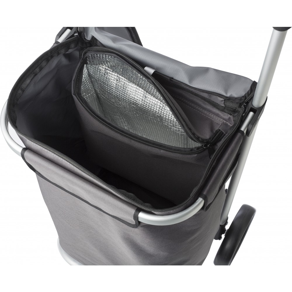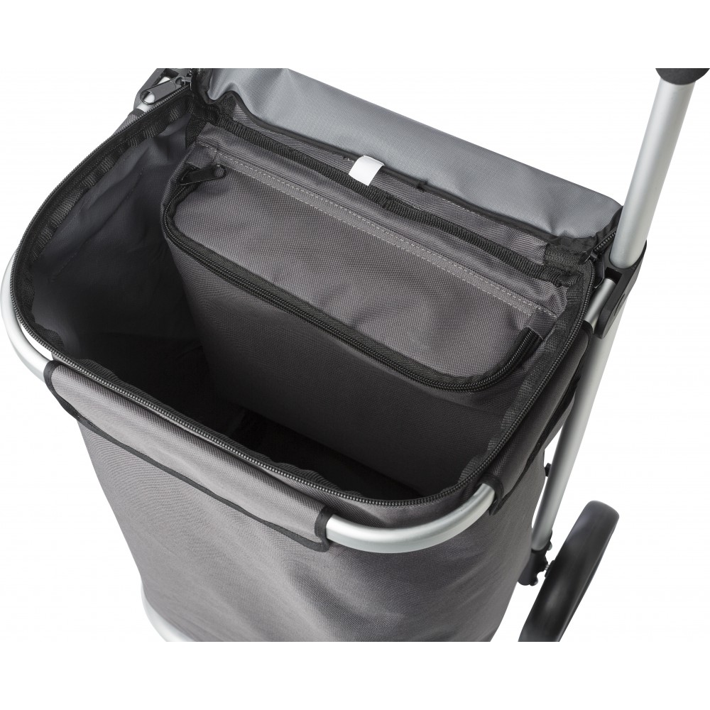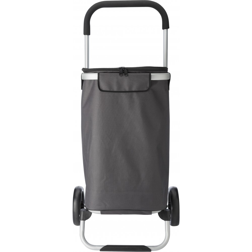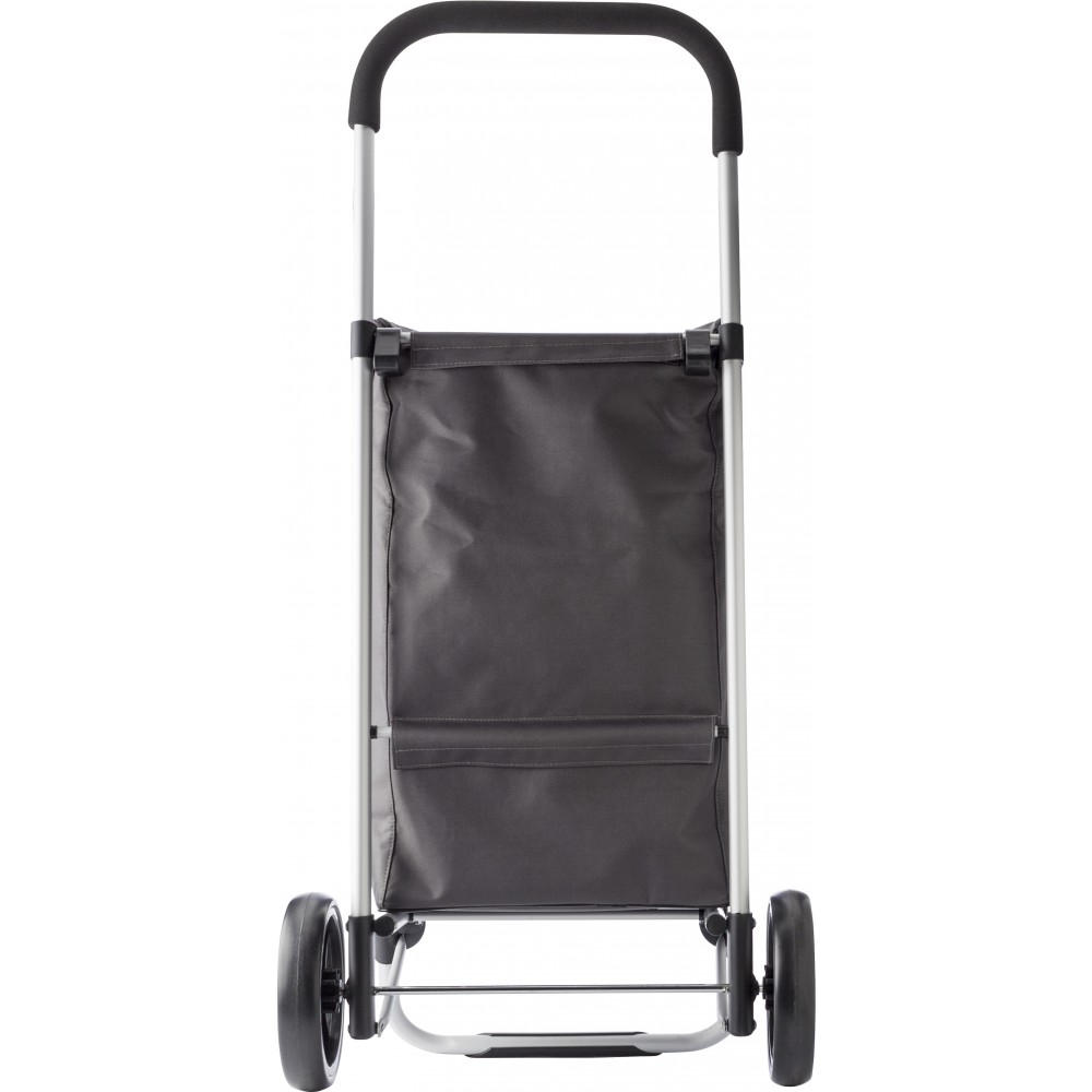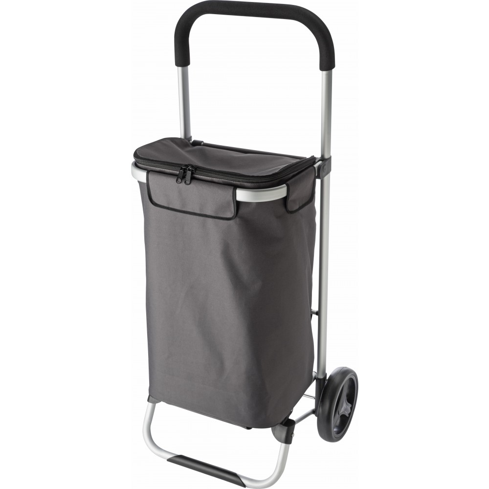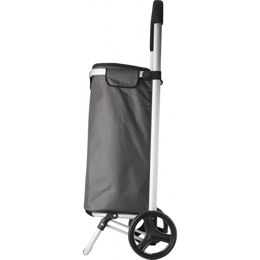 Bevásárlókocsi. Gurulós bevásárlókocsi alumínium vázzal, EVA fogóval, Oxford anyagból. Összeszerelést igényel. Emblémázás: Szitanyomás