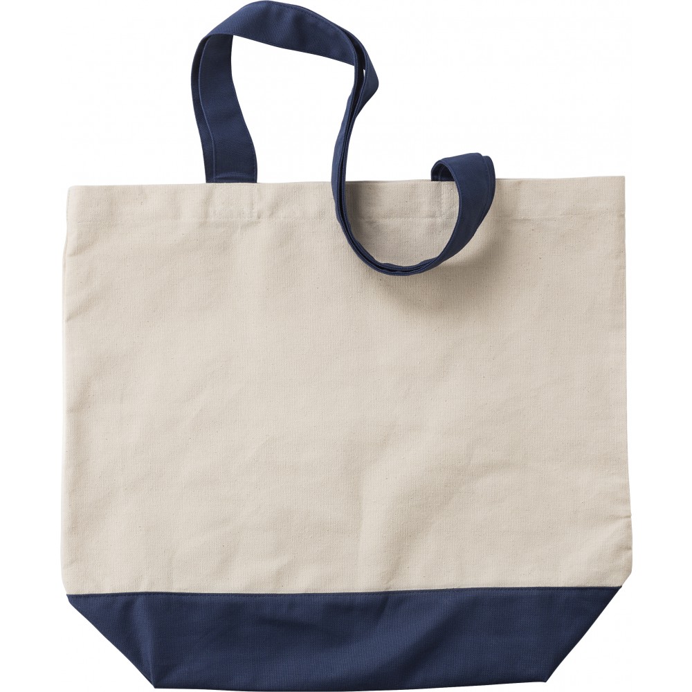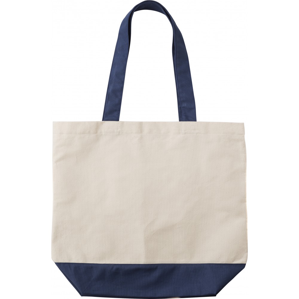Bevásárlótáska vagy strandtáska belső zsebbel, színes füllel és alsó résszel. 280 g/m2 vászon anyag. Emblémázás: Szitanyomás