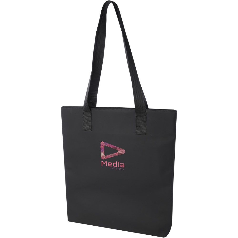 A Turner bevásárlótáska rendkívül tartós és fenntartható anyagokból készült. Külseje 51%-ban GRS újrahasznosított PU műanyagból, bélése pedig 100%-ban GRS rPET anyagból készült. A táska rendelkezik egy külön laptop- vagy tablet zsebbel és egy cipzáras zsebbel a kisebb tárgyak számára. Ez a táska a klasszikus kialakításával és strapabíró anyagaival a kedvenceid közé fog tartozni. Emblémázás: Szitanyomás