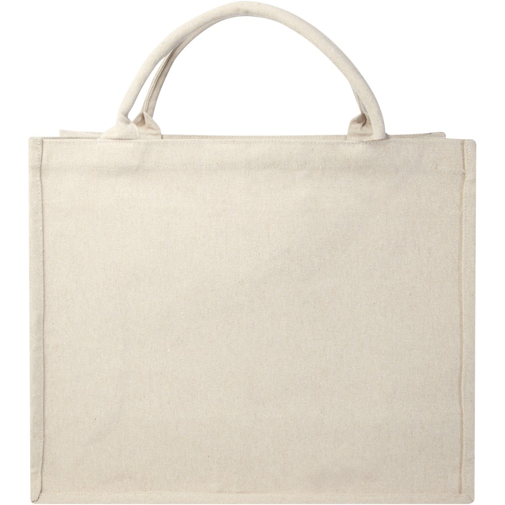 A Page újrahasznosított bevásárlótáska tökéletesen alkalmas a mindennapi tárgyak tárolására, utazásokhoz és bevásárlásokhoz. Rövid, de erős fülekkel ez a táska hosszú ideig kényelmesen hordozható. A táska Cyclo újrahasznosított szálakat tartalmaz, ahol előválogatott hulladékot használnak, amely meghatározza a fonal színét. Minden táskához egy Aware nyomjelző is tartozik. Ez az innovatív funkció lehetővé teszi a felhasználók számára, hogy egy QR-kód segítségével nyomon követhessék a termék eredetét és útját, növelve az ellátási lánc átláthatóságát és elősegítve a termék és a gyártási folyamat közötti szorosabb kapcsolatot. Méret: 42 x 18 x 35 cm. Emblémázás: Szitanyomás