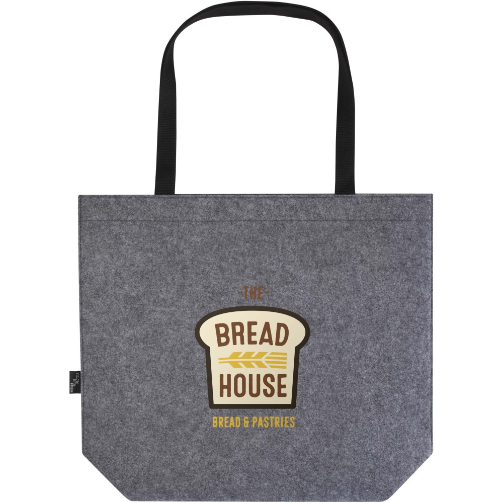 Nagy méretű bevásárlótáska, amely puha és tartós, prémium minőségű, GRS tanúsítvánnyal rendelkező újrahasznosított filcből készült. A táska tágas főrekesszel rendelkezik (akár 20 liter kapacitás), megerősített pamut fülekkel (30 × 2,5 cm) a kényelmes hordozás érdekében. A felső részén egy zárógombbal van ellátva. Emblémázás: Hímzés, Szitanyomás
