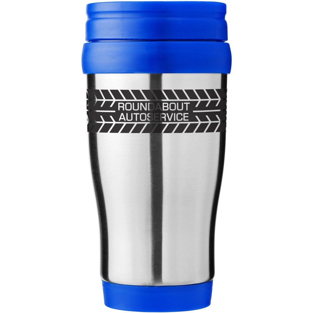 A Sanibel tökéletes bögre italok fogyasztásához útközben. A bögre dupla, szigetelt falú, így sokáig melegen tartja az italokat. A csavaros, elcsúsztatható fedél megkönnyíti az ital fogyasztását. Az ergonomikus hüvelykujjtámaszú fogantyú jó fogást biztosít. A Sanibel bögre rozsdamentes acélból és fekete műanyagból készült, így nagyon erős, korrózióálló és könnyen tisztítható. Nem szivárgásmentes. Szénsavas italokkal is használható. Mosogatógépben nem mosható és mikrohullámú sütőben történő melegítésre nem alkalmas. Űrtartalom: 400 ml. Emblémázás: Gravírozás, Körszita, Tamponnyomás