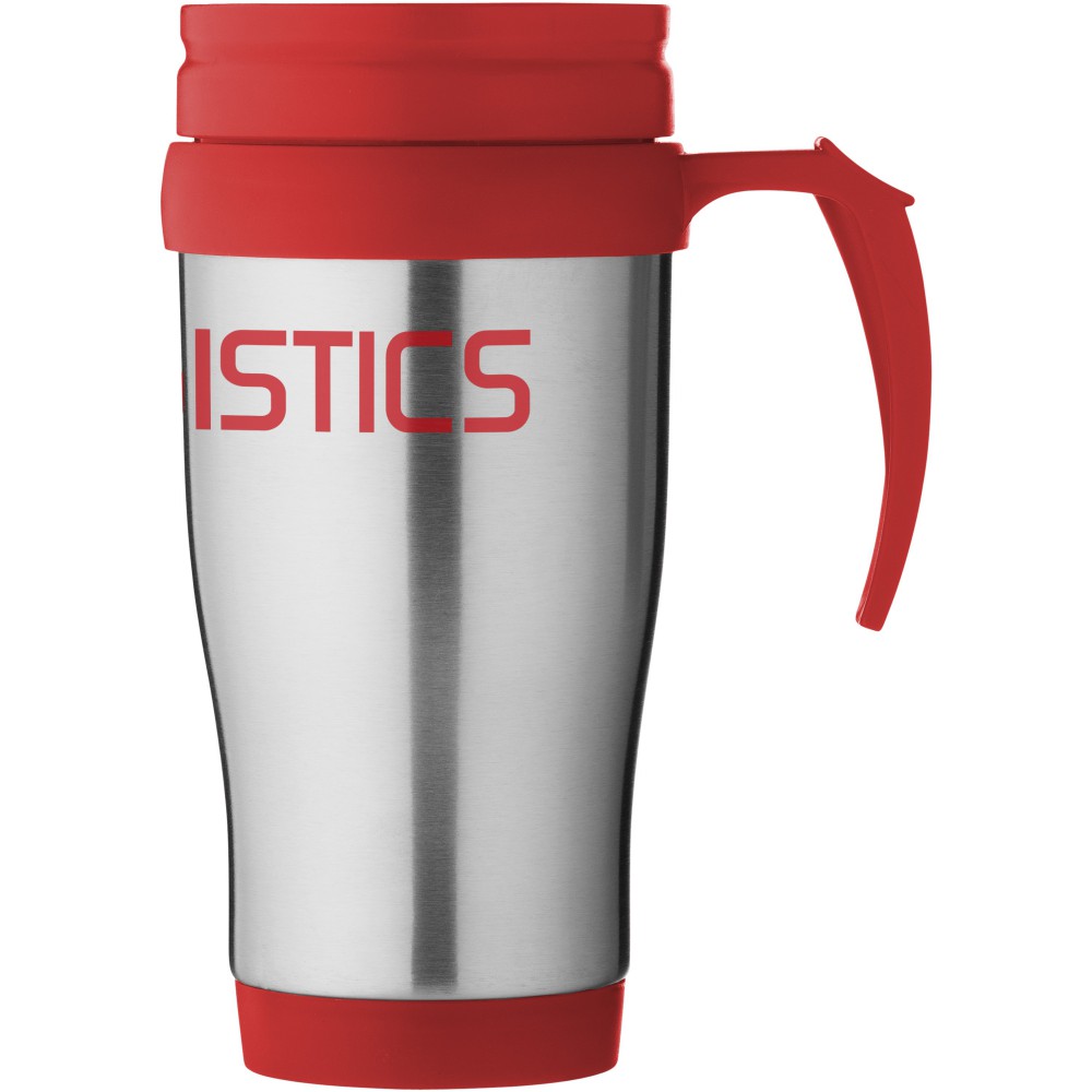 A Sanibel tökéletes bögre italok fogyasztásához útközben. A bögre dupla, szigetelt falú, így sokáig melegen tartja az italokat. A csavaros, elcsúsztatható fedél megkönnyíti az ital fogyasztását. Az ergonomikus hüvelykujjtámaszú fogantyú jó fogást biztosít. A Sanibel bögre rozsdamentes acélból és fekete műanyagból készült, így nagyon erős, korrózióálló és könnyen tisztítható. Nem szivárgásmentes. Szénsavas italokkal is használható. Mosogatógépben nem mosható és mikrohullámú sütőben történő melegítésre nem alkalmas. Űrtartalom: 400 ml. Emblémázás: Gravírozás, Körszita, Tamponnyomás