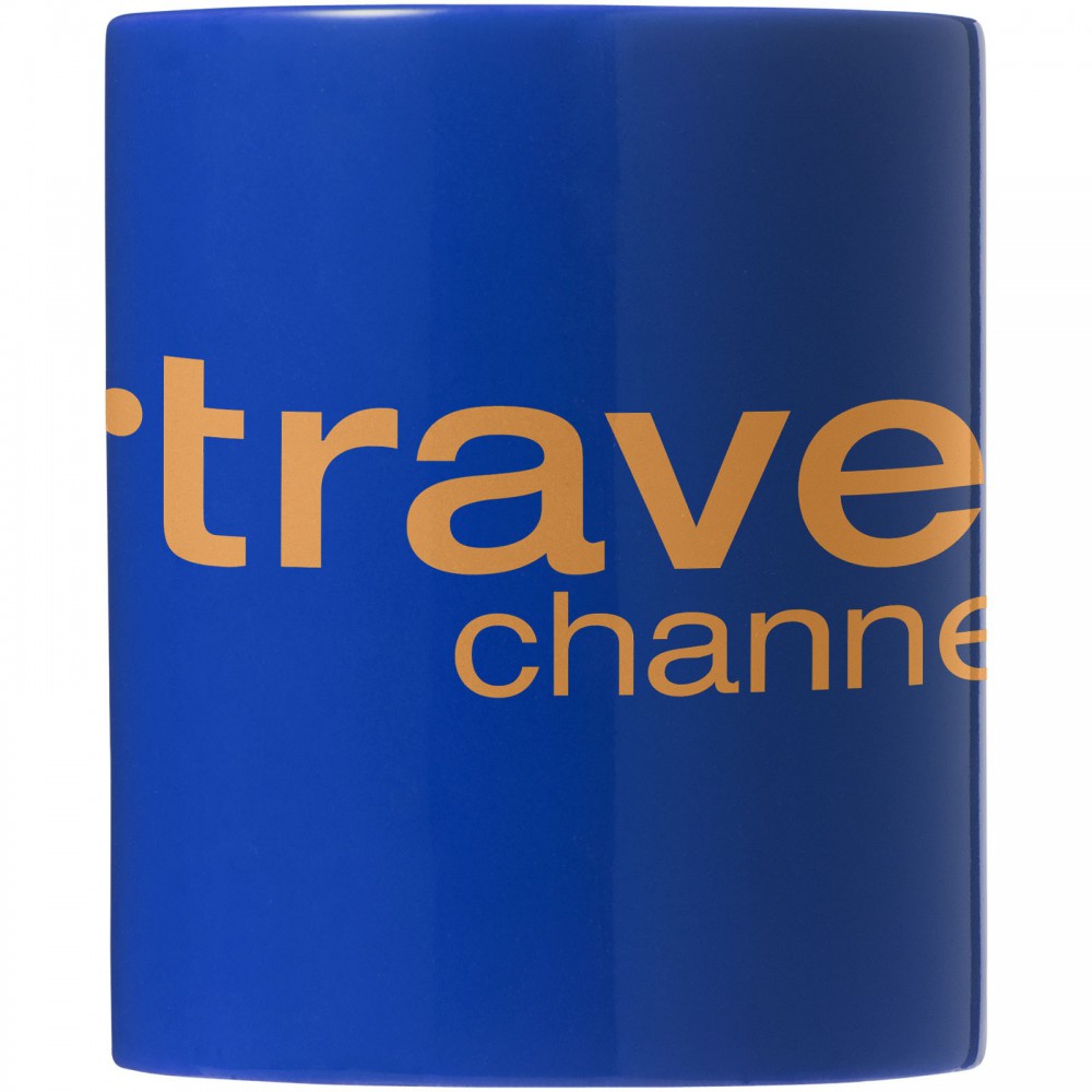 Klasszikus 330 ml-es kerámia bögre. Nem szivárgásmentes. Szénsavas italokkal is használható. Mosogatógépben mosható és mikrohullámú sütőben történő melegítésre alkalmas. Fehér kartondobozban szállítjuk. Emblémázás: Bögredekor