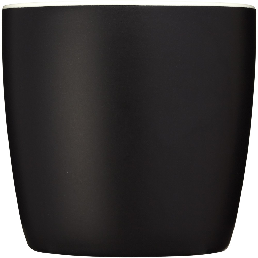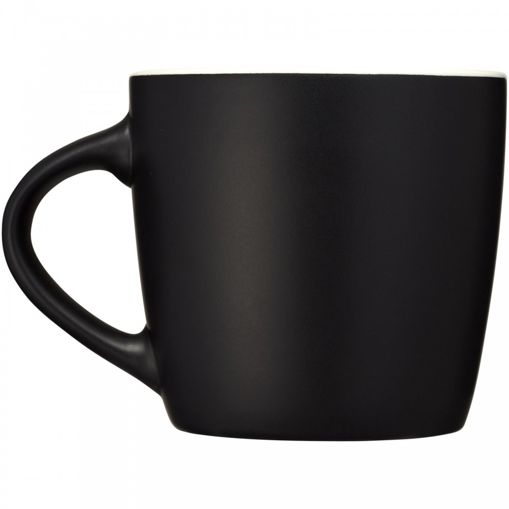 Riviera kerámia bögre matt külső felülettel és színes belsővel. Az EN12875-1 szabványnak megfelel. Csomagolása fehér doboz. Nem szivárgásmentes. Szénsavas italokkal is használható. Mosogatógépben mosható és mikrohullámú sütőben történő melegítésre alkalmas. Űrtartalom: 350 ml. Emblémázás: Bögredekor