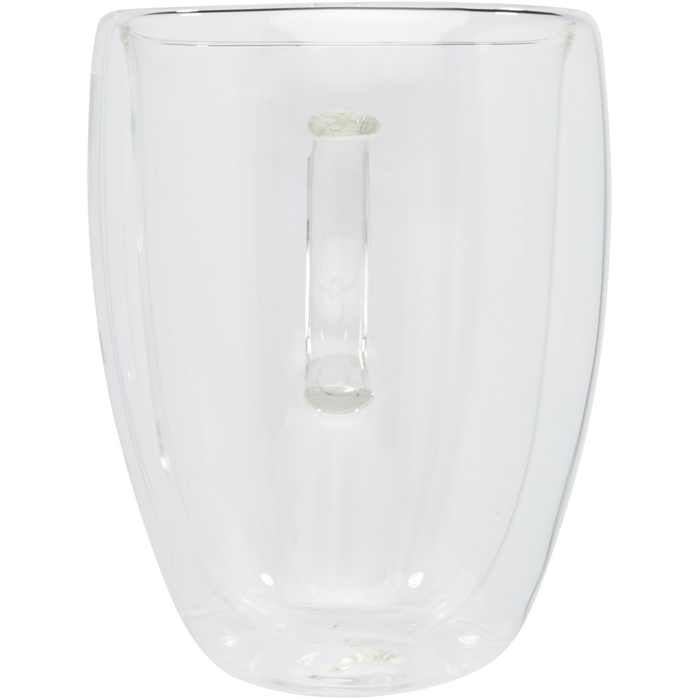2 db duplafalú hőkezelt üveg pohár bambusz alátéttel. A bambusz fenntartható, környezeti és társadalmilag felelős forrásokból származik. A dupla boroszilikát üvegnek köszönhetően az ital hőmérséklete hosszú ideig megmarad. Űrtartalma 350 ml. Alátét mérete: 10 x 10 x 1 cm. Boroszilikát üveg, bambusz. Mosogatógépben nem tisztítható. Emblémázás: Gravírozás, Tamponnyomás