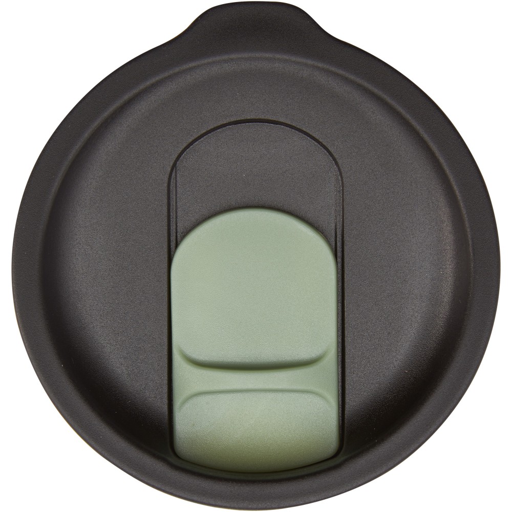 A stílusos Nordia bögre rozsdamentes acél külsővel és fenntartható újrahasznosított PP belsővel készült. A belső fedél, a csúszka és a fül is újrahasznosított PP-ből készül, tanúsított és felelős forrásból. A fedele szivárgásmentes, csúsztatható zárással, így ez a bögre tökéletes italok fogyasztásához útközben. BPA-mentes, a német élelmiszerbiztonsági törvény (LFGB) szerint tesztelt és jóváhagyott, és a REACH előírásai szerint ftaláttartalomra tesztelve. Űrtartalma 400 ml. Kézi mosogatása ajánlott. Újrahasznosítható PP műanyag, rozsdamentes acél. Emblémázás: Gravírozás, Tamponnyomás