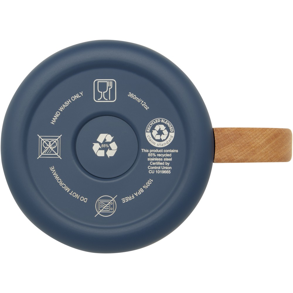A Bjorn bögre RCS tanúsítvánnyal rendelkező, újrahasznosított rozsdamentes acélból készült, a fogantyú pedig felelősségteljesen előállított bükkfából. A bögrében lévő réz vákuumszigetelés segít abban, hogy az italok hosszú ideig ideális hőmérsékleten maradjanak. Ez a bögre nagyszerű alternatívája a hagyományos bögréknek, amelyet úgy terveztek, hogy segítsen megakadályozni a hőátadást a bögre külsejére. A német élelmiszer-biztonsági jogszabályok (LFGB) szerint tesztelt és jóváhagyott, valamint a REACH szerint ftalát-tartalomra vonatkozóan tesztelt termék. Űrtartalom: 360 ml. BPA-mentes. Emblémázás: Gravírozás