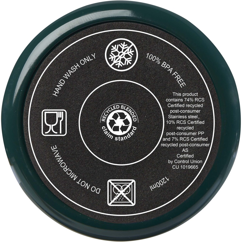 A Melbourne pohár tartós, duplafalú kialakítással rendelkezik, amely bármilyen környezetben képes az italokat melegen vagy hidegen tartani. A pohár belső fala újrahasznosított műanyagból készült, míg a külső fala RCS tanúsítvánnyal rendelkező újrahasznosított rozsdamentes acélból. A pohár 1200 ml-es űrtartalommal rendelkezik, amely stílusosan biztosítja a napi hidratáltságot. Cseppmentes, nyomófedeles kialakítással rendelkezik, két nyílással és forgatható zárómechanizmussal. Élelmiszeripari minőségű újrahasznosított szívószállal szállítjuk. Kézi mosogatás javasolt. Stanley hasonmás. Emblémázás: Gravírozás, Körszita, Tamponnyomás