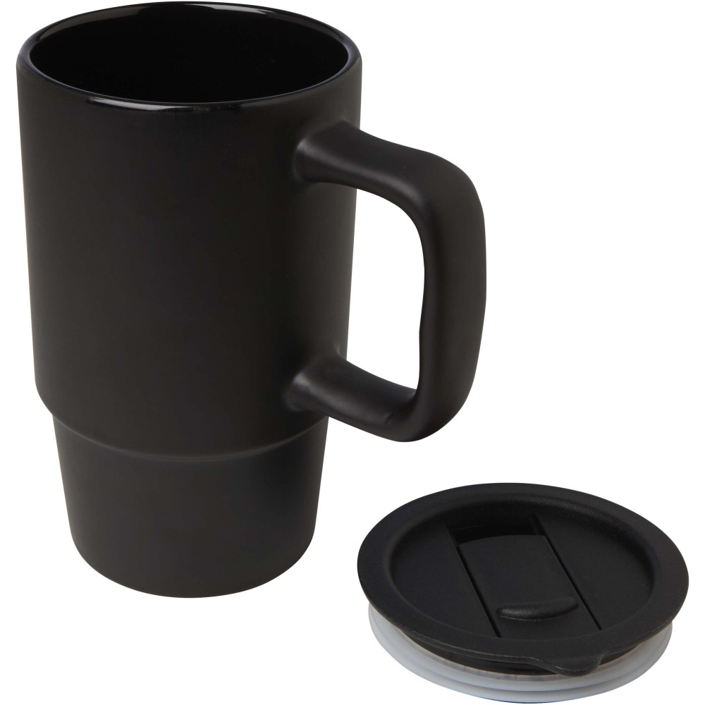 Kerámia bögre nagy, túlméretezett füllel a könnyű fogás érdekében, valamint cseppmentes műanyag tetővel az útközbeni kényelemhez. Külső felülete stílusos, matt kivitelű, a bögre pedig minden nyomtatási eljárás esetén mosogatógépben mosható. Újrahasznosított kartondobozos díszcsomagolásban kerül átadásra. Űrtartalom: 450 ml. Emblémázás: Bögredekor, Tamponnyomás