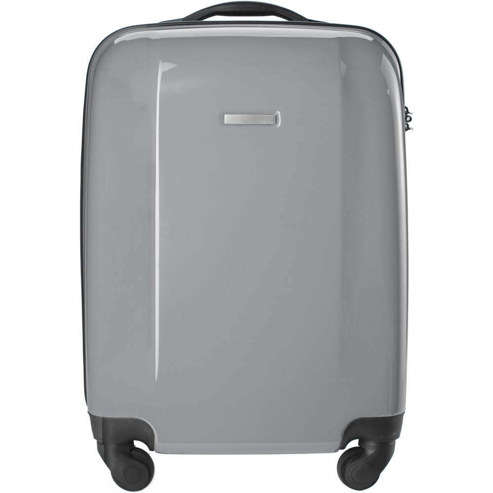 Keményfedelű bőrönd PC/ABS műanyagból, 4 körbeforgó kerékkel, beépített számzárral. Emblémzásra alkalmas fémlappal, ami fixen a terméken van. Emblémázás: Gravírozás