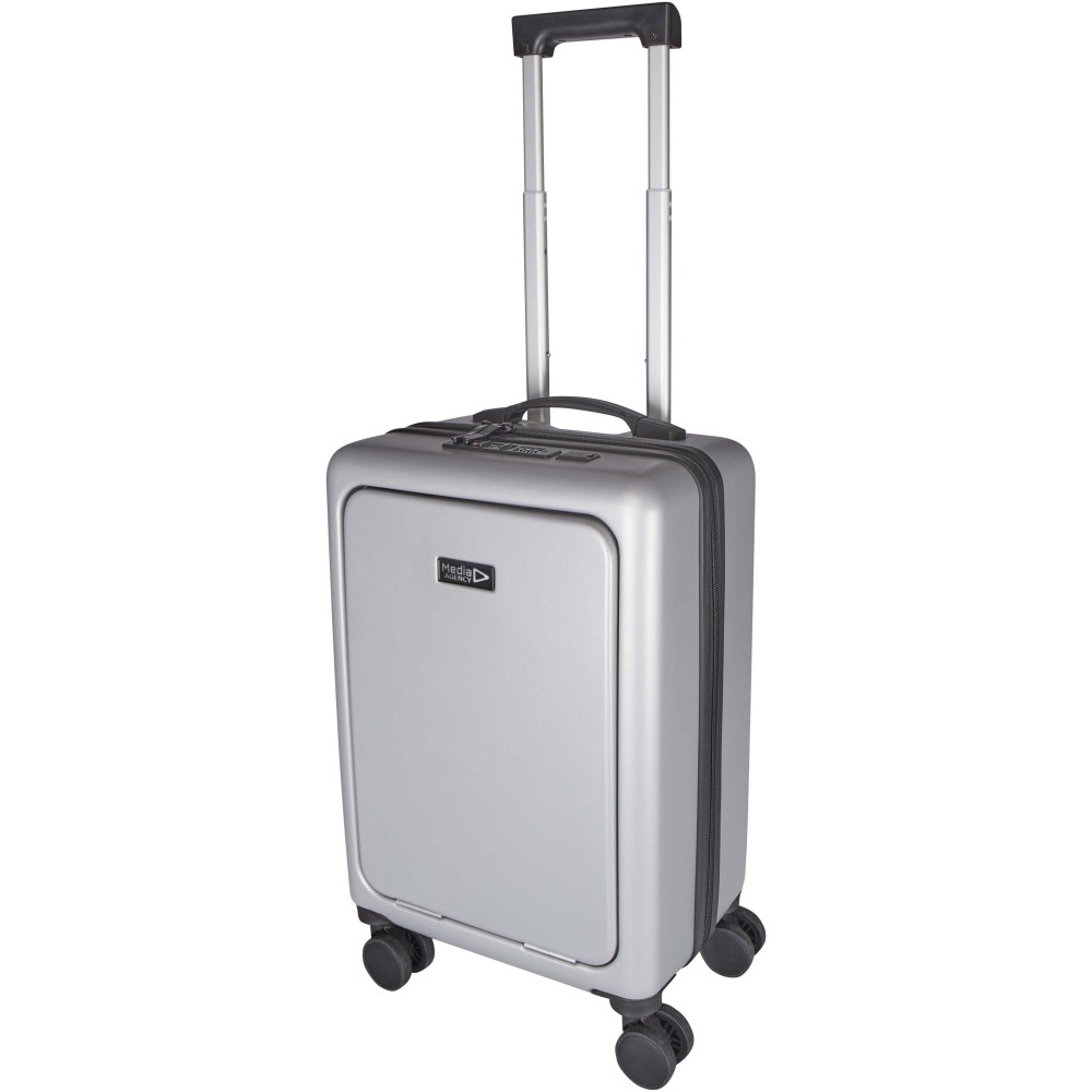 A Rover Pro 20 kabinbőrönd kiemelkedik elöl nyitható, 20 -os laptoprekeszével és beépített USB töltőportjával, így tökéletes útitárs üzleti és szabadidős utazásokhoz egyaránt. Ütésálló, GRS tanúsítvánnyal rendelkező újrahasznosított műanyagból készült, minőségi RPET béléssel. Az elöl nyitható laptoprekesz rendszerező zsebekkel van ellátva elektronikai kiegészítők számára, illetve a főrekesz és a laptoprekesz is TSA számzárral zárható. A bőrönd 360 fokban forgó dupla kerekekkel rendelkezik a repülőtereken történő mozgatás megkönnyítése érdekében. A legtöbb légitársaság kézipoggyászként elfogadja. Emblémázás: