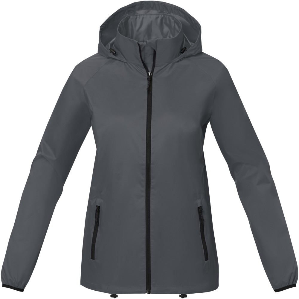 Könnyű női dzseki. Egyedi belső emblémázási lehetőségek. Letéphető, kivágható címke a címke nélküli kényelemért. 500 mm vízálló. Raglan ujjak. Behajtható kapucni. Fordított cipzár. Elülső zsebek cipzárral. Belső zseb. Állítható húzózsinór megállítóval az alsó szegélyben és a kapucniban. 280T ripstop 100% nylonból, 72 g/m2, bélés, 210T taft 100% poliészterből, 60 g/m2. Emblémázás: Hímzés, Szitanyomás