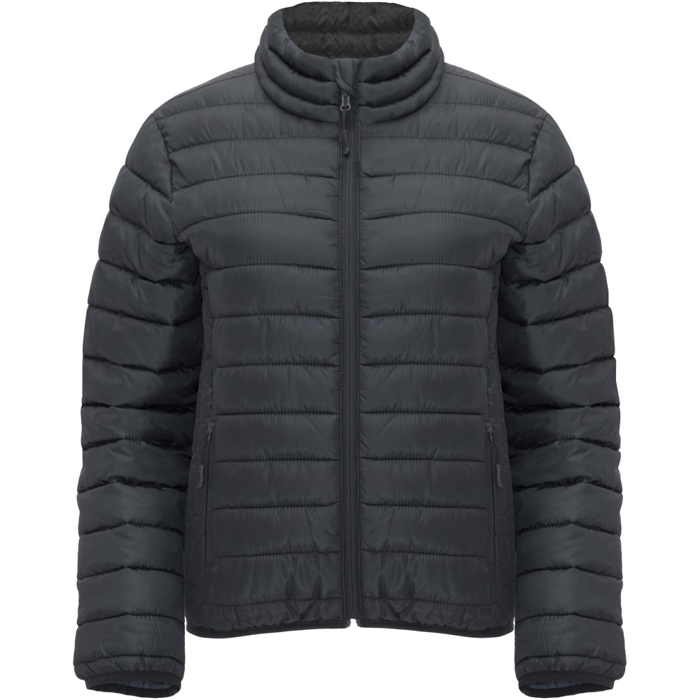 Női, karcsúsított, steppelt dzseki tollszerű tapintású töltettel, tasakkal. Fordított cipzárak, színben illeszkedő állvédővel és cipzárral. Két cipzáras elülső zseb. Gumis szegély a galléron, a kézelőn és az aljon. Kontrasztos színű bélés. Könnyű és összehajtható ruhadarab. Vízálló. Szélálló. 100% poliészter, 290 g/m2. Bélés és töltet: 100% poliészter. Emblémázás: Hímzés