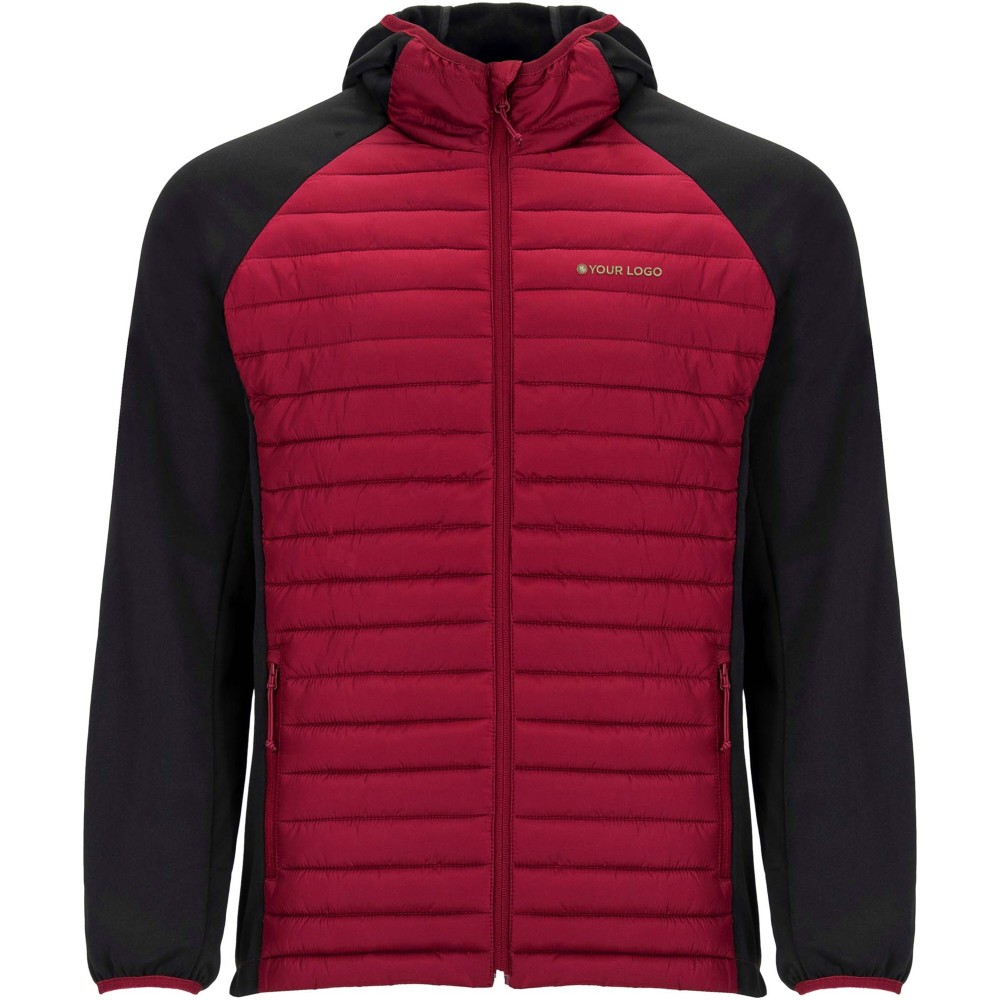 Uniszex dzseki két anyag kombinációja. Fix kapucni. Raglán ujjak. Softshell anyagból készült ujjak, oldalsó panelek és kapucni. Steppelt, pehelytapintású szövet elöl és hátul. Fordított cipzár, színben illeszkedő állvédő és cipzár. Két cipzáras elülső zseb. Gumis szegély a galléron, a kézelőn és a aljon. Szélálló modell. 100% poliészterből szőtt, kontrasztos anyag, interlock kötés 100% poliészterből. Töltet: műpehely, 100% poliészterből. Emblémázás: Hímzés