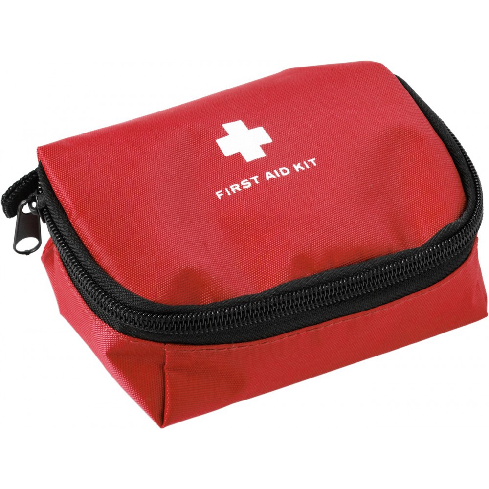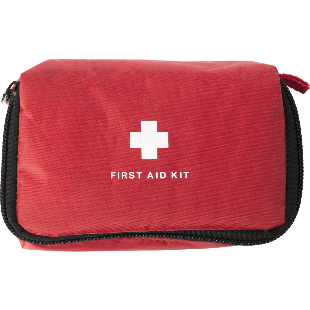 Elsősegélykészlet nylon tokban. Tartalma: kötszerek, ragtapaszok, fertőtlenítő kendők és olló. Emblémázás: Szitanyomás