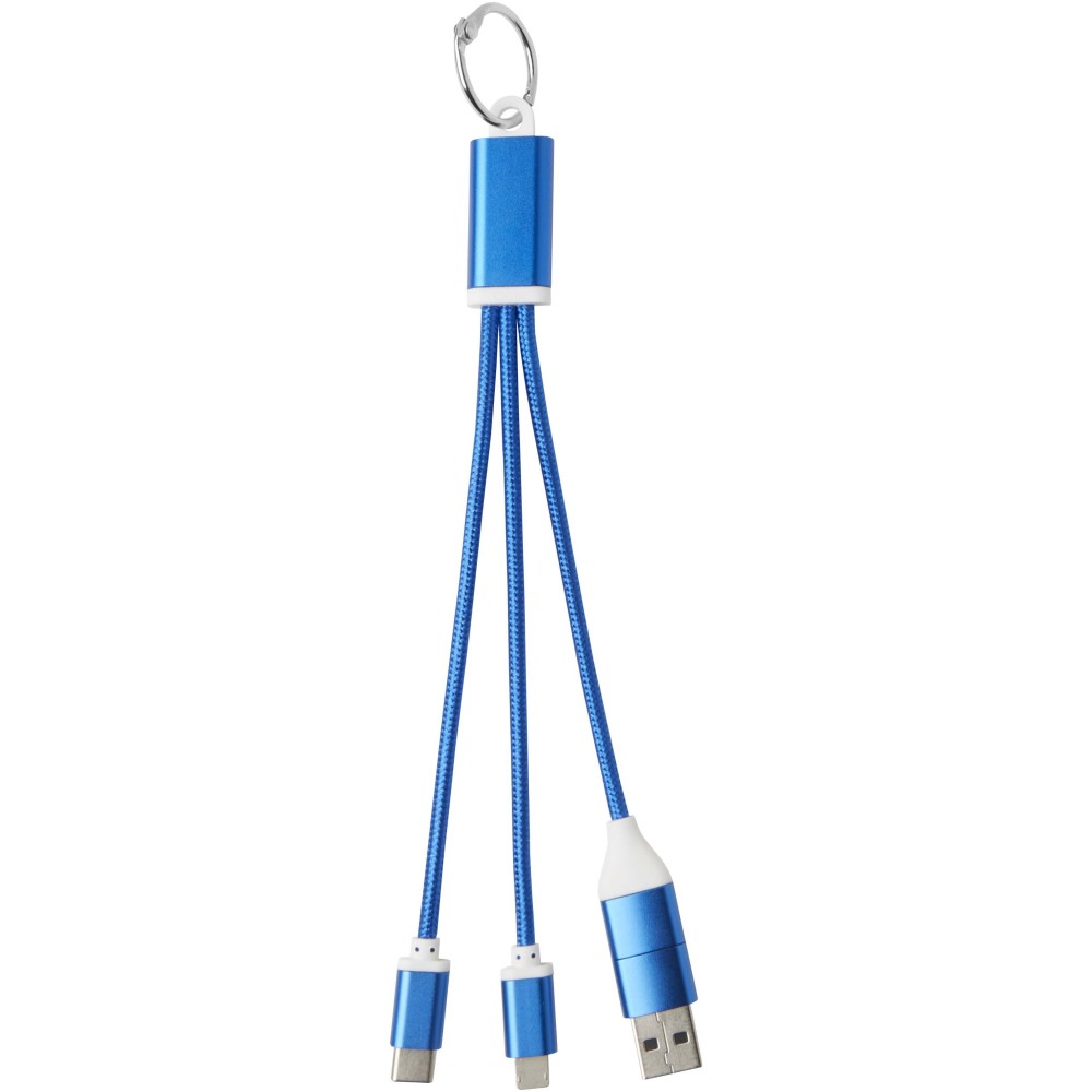 4 az 1-ben kulcstartós töltőkábel újrahasznosított alumíniumból, max. 10W kimeneti teljesítménnyel. Az USB-A és Type-C bemeneti csatlakozók, valamint a Type-C és Lightning/Micro USB kombinált kimeneti csatlakozók (támogatja az Apple iOS és Android eszközöket) lehetővé teszik, hogy a legtöbb okostelefont, fényképezőgépet, powerbankot és fülhallgatót tölts. Emblémázás: Gravírozás, Tamponnyomás