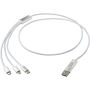 Ez a kábel USB-A és Type-C bemeneti csatlakozóval, valamint Type-C, Micro USB és Lightning/Micro USB kombinált kimeneti csatlakozóval rendelkezik. A csatlakozóknak köszönhetően a legtöbb iOS/Android okostelefont, fényképezőgépet, powerbankot és fülhallgatót töltheted. A kábel hossza 100 cm, újrahasznosított alumíniumból és RPET-ből készült. Emblémázás: Gravírozás, Tamponnyomás
