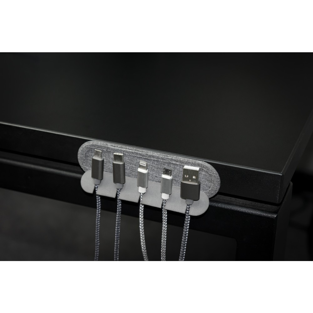Ha gondot okoznak az íróasztal, tévé, számítógép vagy telefon körül zsúfolódó vezetékek, a Cabledock egyszerű megoldást kínál. Az 5, legfeljebb 6 mm-es kábelnyílással kompatibilis az összes töltő- és perifériakábellel. Összecsukható és öntapadó hátú a könnyű elhelyezés érdekében. Emblémázás: Tamponnyomás