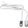 Töltőkábel alumínium csatlakozókkal. Hossza: 1 méter. USB-C-ről USB-C-re. Teljesítmény: 65 W. Kék töltési sebességet jelző lámpa az egyik aljzaton. Adatátviteli sebesség 480 Mbps. Emblémázás: Gravírozás