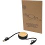 A Chechia 5 az 1-ben visszahúzható adat- és 45W-os gyorstöltő kábel újrahasznosított műanyagból készült, felelősen beszerzett bambusz elemekkel kiegészítve. A kábel USB-A és Type-C bemeneti csatlakozókat, valamint egy 3 az 1-ben Type-C és Lightning/Micro USB kombinált kimeneti csatlakozót tartalmaz. Az USB-C?USB-C kapcsolat maximális teljesítménye 45W, az USB-A?USB-C kapcsolaté 24W, míg az összes többi kapcsolat maximális teljesítménye 15W. Kompatibilis a CarPlay és az Android Auto rendszerekkel, és beépített telefontartóval is rendelkezik a további kényelem érdekében. Akár otthon, az irodában vagy útközben használod, a Chechia kábel teljesítményt és stílust garantál. Kábel hossza: 100 cm. Emblémázás: Gravírozás, Tamponnyomás