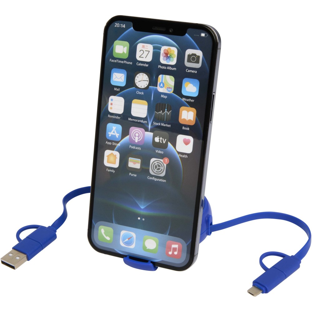 Az Alasia 5 az 1-ben visszahúzható adat- és 45W-os gyorstöltő kábel újrahasznosított műanyagból készült, tartós és stílusos újrahasznosított alumínium elemmel, amely fenntarthatóbb és elegáns töltési megoldást kínál. A kábel USB-A és Type-C bemeneti csatlakozókat, valamint egy 3 az 1-ben Type-C és Lightning/Micro USB kombinált kimeneti csatlakozót tartalmaz. Az USB-C?USB-C kapcsolat maximális teljesítménye 45W, az USB-A?USB-C kapcsolaté 24W, míg az összes többi kapcsolat maximális teljesítménye 15W. Kompatibilis a CarPlay és az Android Auto rendszerekkel, és beépített telefontartóval is rendelkezik a további kényelem érdekében. Akár otthon, az irodában vagy útközben használod, az Alasia kábel teljesítményt és stílust garantál. Kábel hossza: 100 cm. Emblémázás: Gravírozás, Tamponnyomás