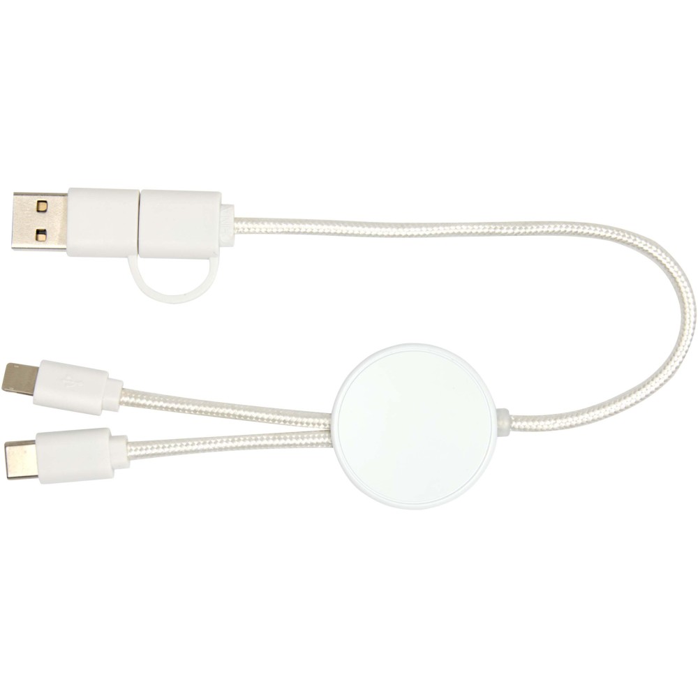 A Citala 5 az 1-ben adat- és 27W-os gyorstöltő kábel újrahasznosított műanyagból készült. A kábel USB-A és Type-C bemeneti csatlakozókkal, valamint Type-C és Lightning/Micro USB kombinált kimeneti csatlakozóval rendelkezik. Az USB-A?USB-C kapcsolat maximális teljesítménye 27W, míg az összes többi kapcsolat maximális teljesítménye 15W. Kompatibilis a CarPlay és az Android Auto rendszerekkel. Akár otthon, az irodában vagy útközben használod, a Citala kábel teljesítményt és stílust biztosít. Kábel hossza: 30 cm. Emblémázás: Tamponnyomás