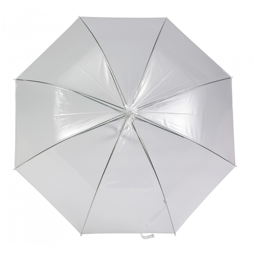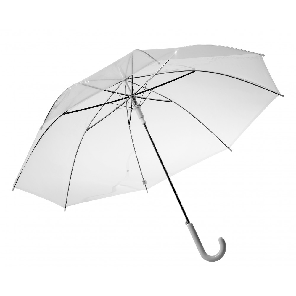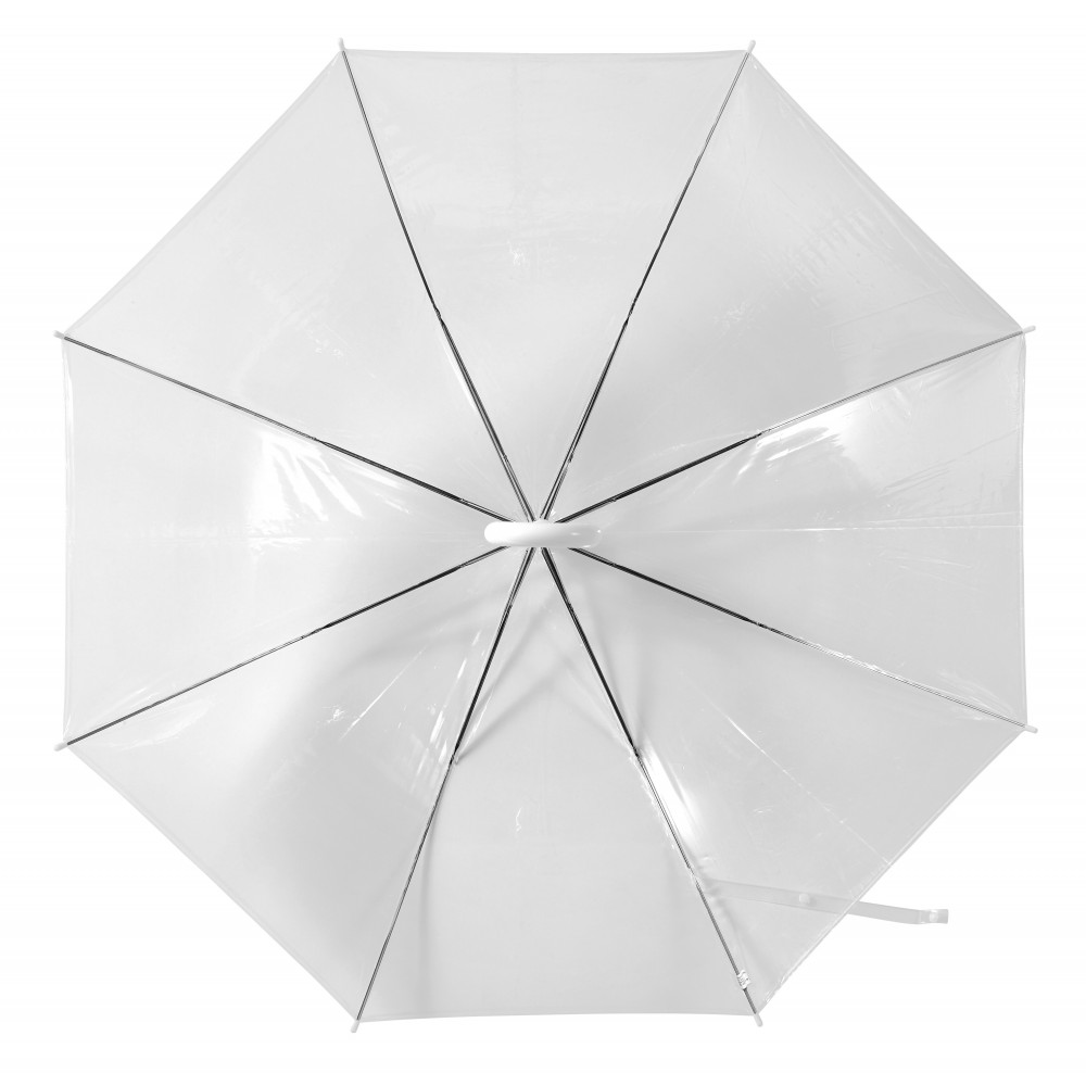 8 paneles átlátszó, automata esernyő fém vázzal, műanyag nyéllel. POE anyag. Emblémázás: Szitanyomás