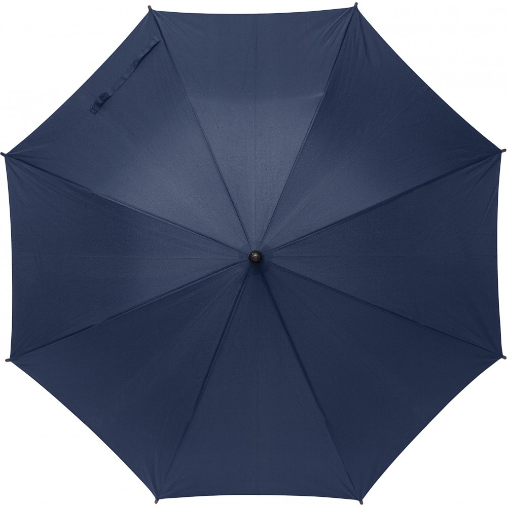 Automatán nyitható esernyő újrahasznosított anyagból, 8 panellel. Fém és üvegszálas szerkezet, műanyag nyél. 170T RPET poliészter anyag. Emblémázás: Szitanyomás