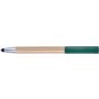 Golyóstoll és érintő kék tollbetéttel, műanyag klipsszel és nyomógombbal. A klipsz nyomógombként funkcionál, és okostelefon-állványként is használható. ABS, bambusz. Emblémázás: Tamponnyomás, UV nyomtatás