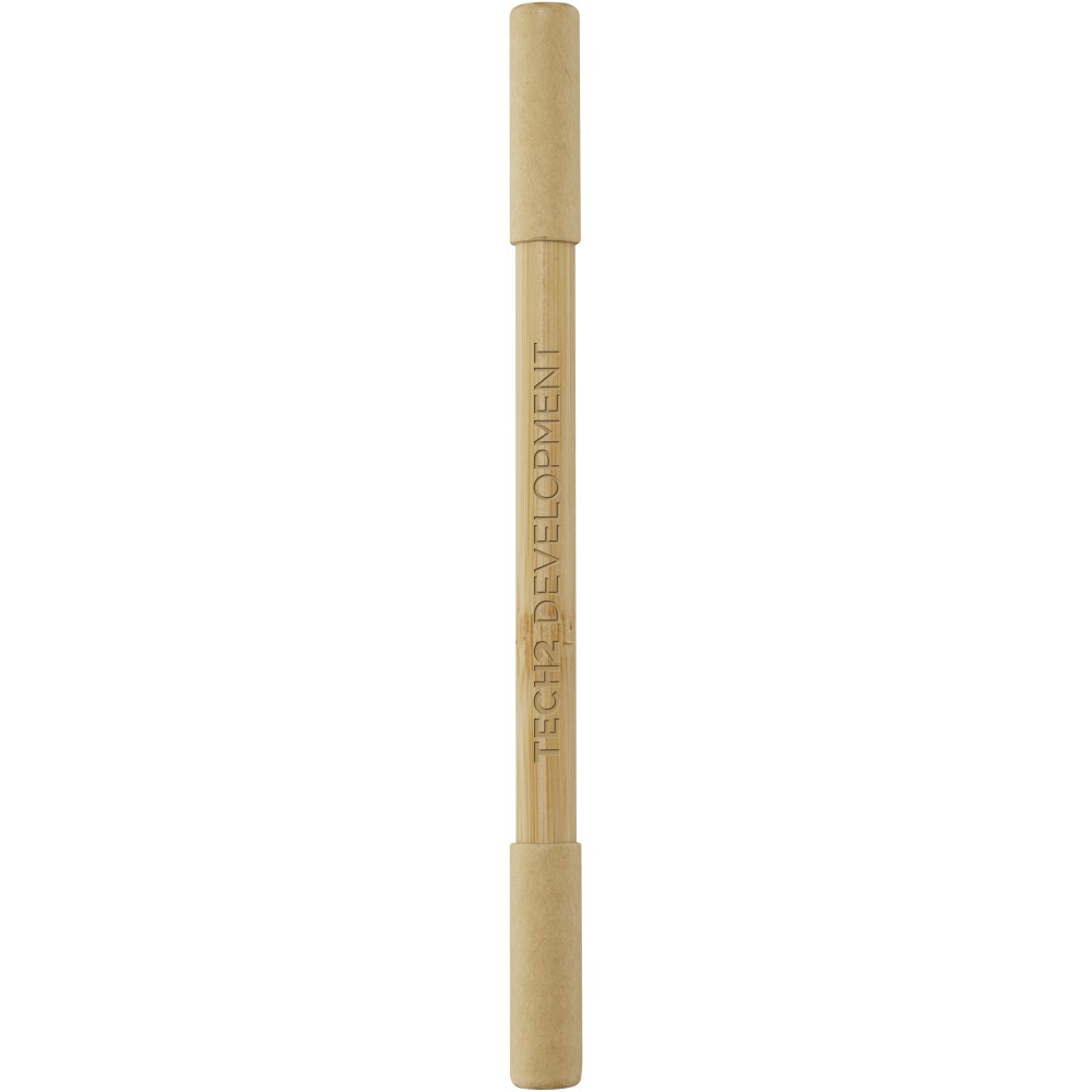 A Samambu bambusz duó toll két fejjel rendelkezik: 1 golyóstoll és 1 tintamentes toll. A tinta nélküli oldal nem igényel tintapatronokat vagy újratöltést. A toll fekete grafithegyét úgy tervezték, hogy látható nyomokat hagyjon, amint érintkezik az írófelülettel. A bambuszból készült toll választása elősegíti a fenntarthatóbb döntések meghozatalát és ösztönzi a megújuló anyagok használatát. A golyóstoll kék tintával, 1,00 mm-es tollhegymérettel és 600 méteres írási hosszal rendelkezik. Íráshosszúság a tintamentes toll esetén: 1500 méter. Emblémázás: Tamponnyomás, UV nyomtatás