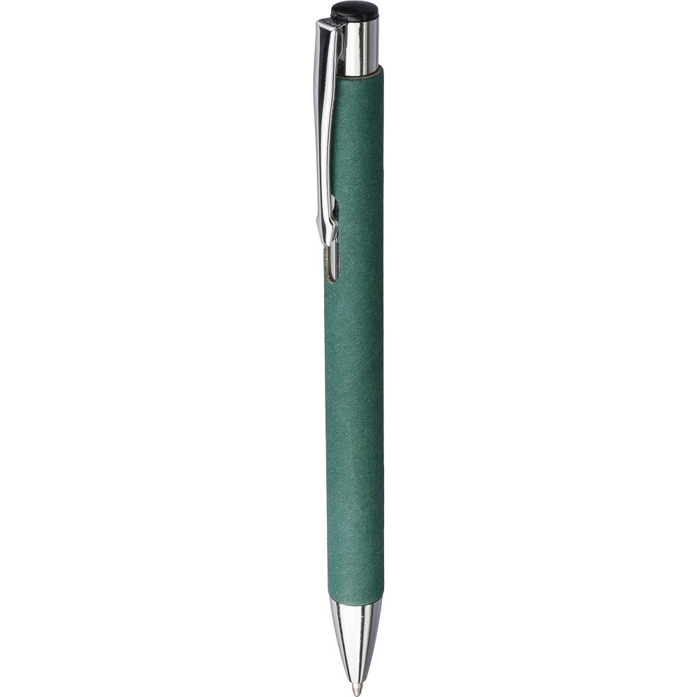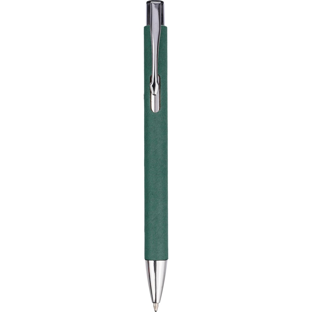 Újrahasznosított kartonból készült golyóstoll krómozott részletekkel. Műanyag tollhegy és nyomógomb, fém klipsz. Kb. 800 méter íráshossz. Fekete tollbetéttel. Emblémázás: Tamponnyomás, UV nyomtatás