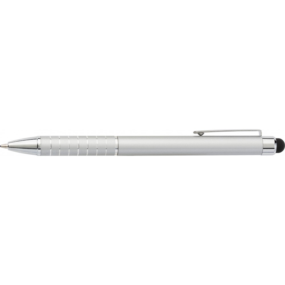 Lakkozott felületű alumínium golyóstoll érintővel, kék tollbetéttel. Emblémázás: Gravírozás, Tamponnyomás, UV nyomtatás