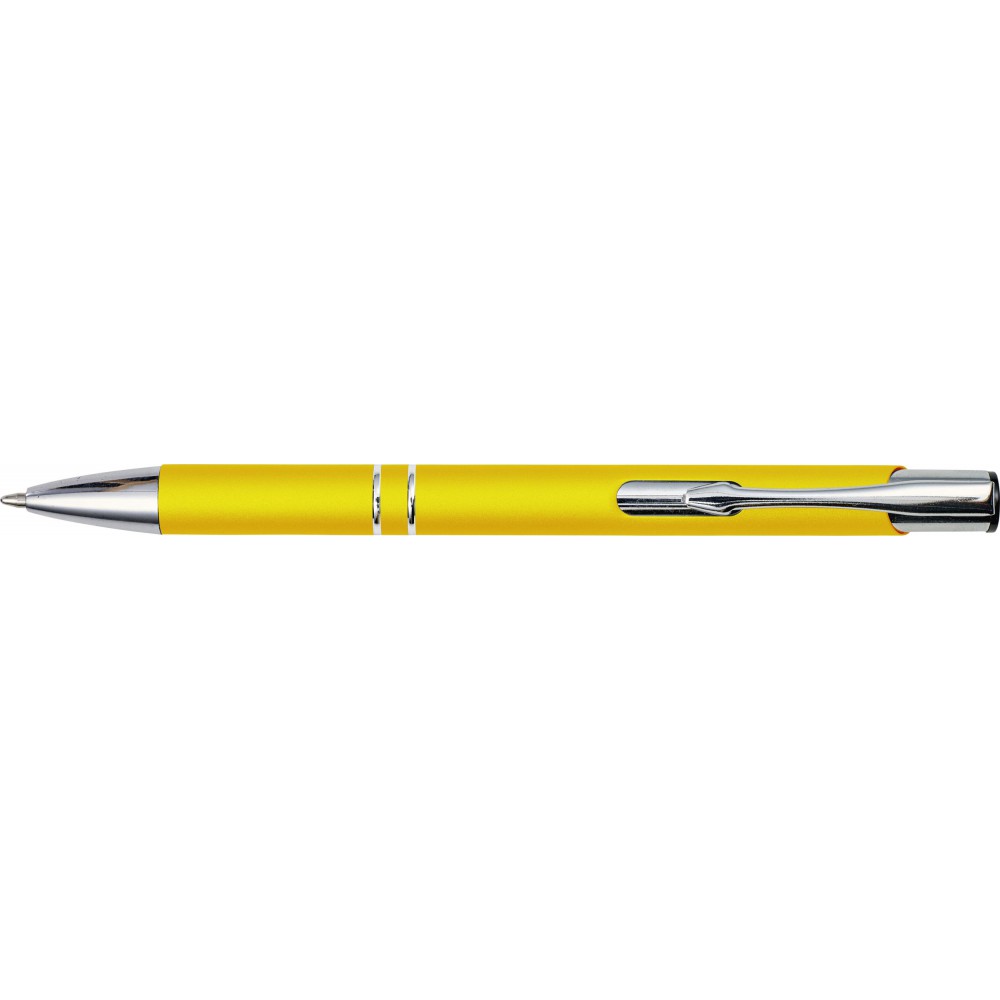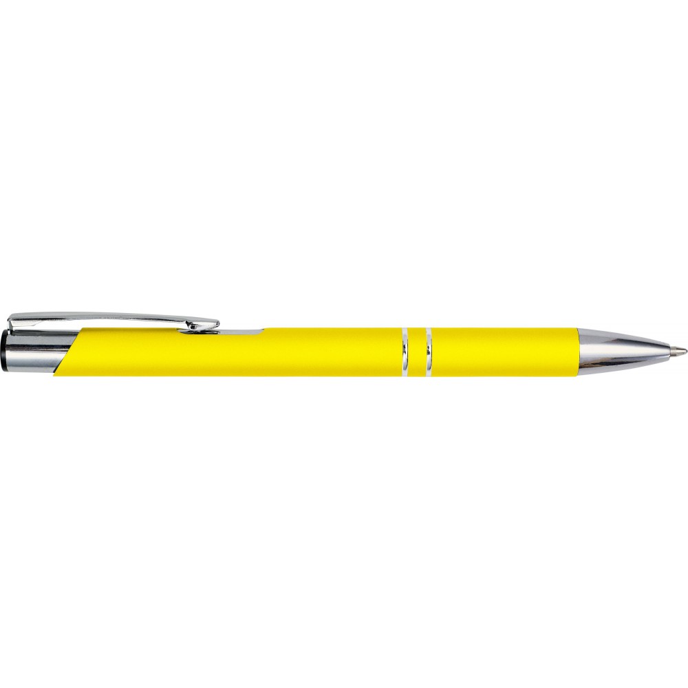 Golyóstoll gumis felülettel, krómozott kiegészítőkkel, kék tollbetéttel. Fém. Emblémázás: Gravírozás, UV nyomtatás