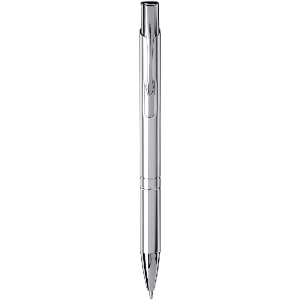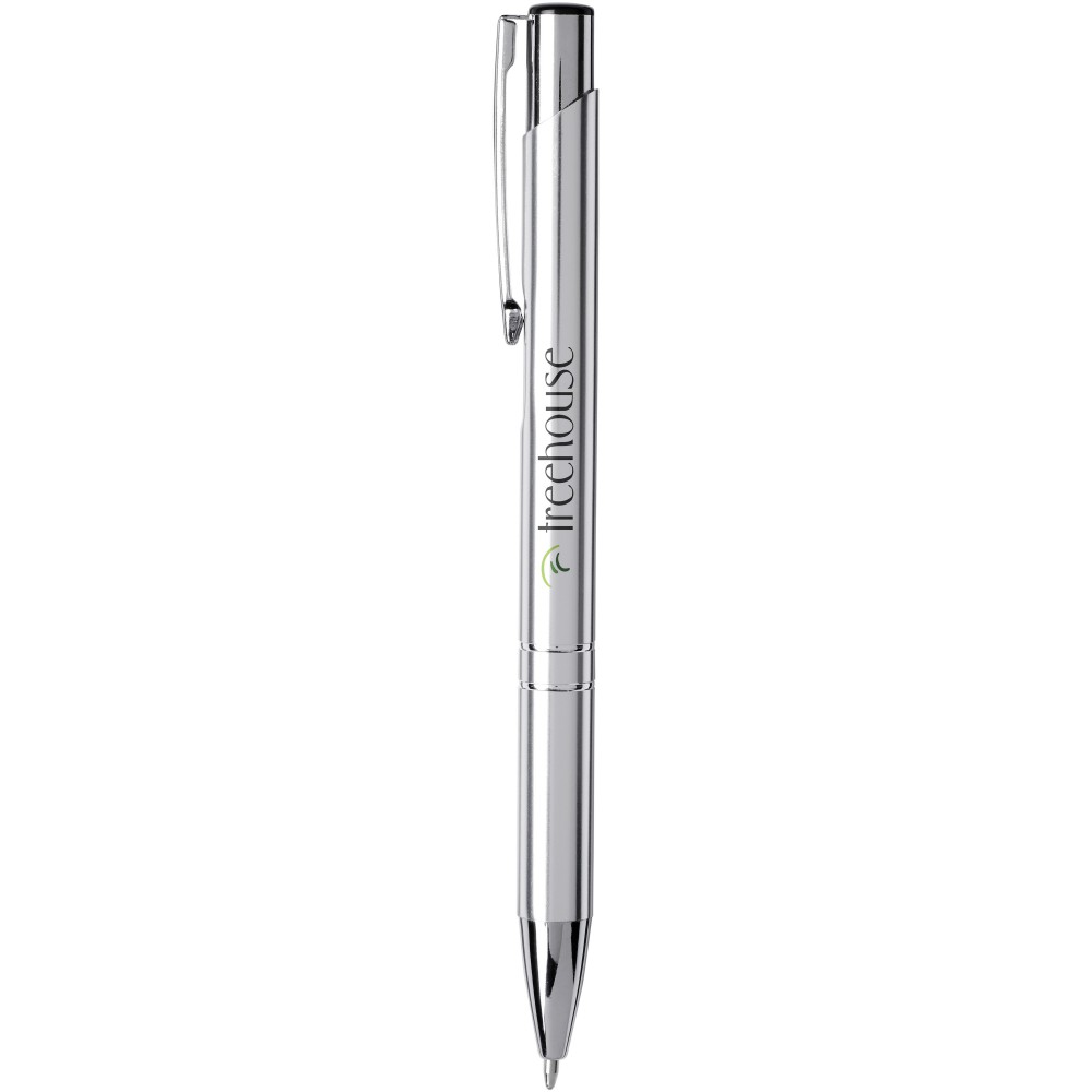 Golyóstoll nyomógombos mechanikával, kék tollbetéttel. A fényes/krómszínű termékeket nem lehet UV technikával emblémázni. Emblémázás: Gravírozás, Tamponnyomás, UV nyomtatás