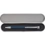 Golyóstoll gumis bevonattal, érintővel, fekete tollbetéttel. Csomagolása fém tolldoboz. Alumínium. Emblémázás: Gravírozás, UV nyomtatás