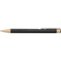 Alumínium golyóstoll matt arany részletekkel, kék tollbetéttel. Emblémázás: Gravírozás, UV nyomtatás