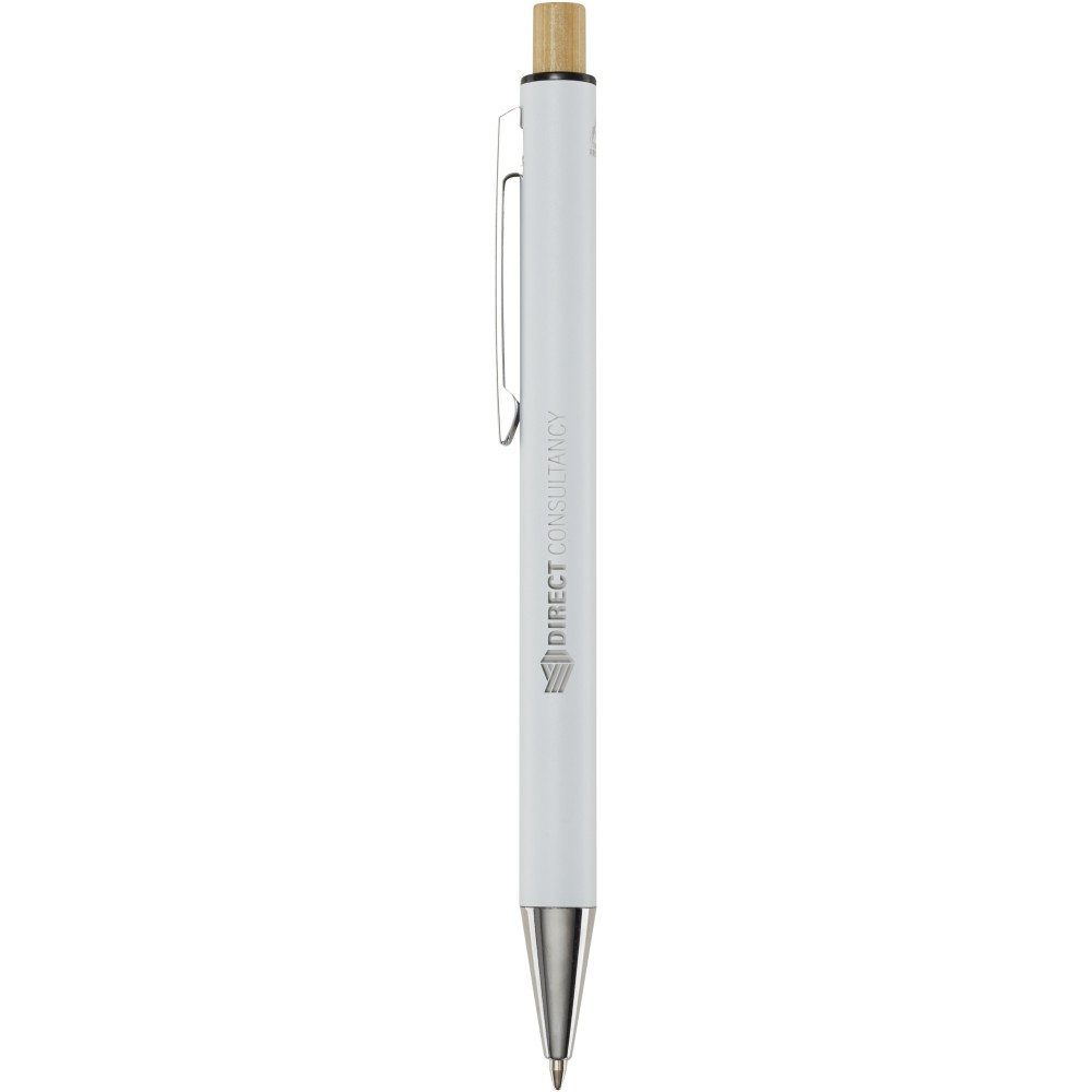 A Cyrus golyóstollújrahasznosított alumíniumból készül, ami kevesebb energiát igényel, mint az alumínium nyersanyagból történő előállítása. Emellett csökkenti a hulladéklerakókba kerülő hulladék mennyiségét és hozzájárul a természeti erőforrások megőrzéséhez, amelynek célja az üvegházhatású gázok kibocsátásának csökkentése. A nyomógomb bambuszból készült. Tollbetét színe: kék. Íráshossz: 800 méter. Tollhegy mérete: 1,00 mm. Emblémázás: Gravírozás, Tamponnyomás