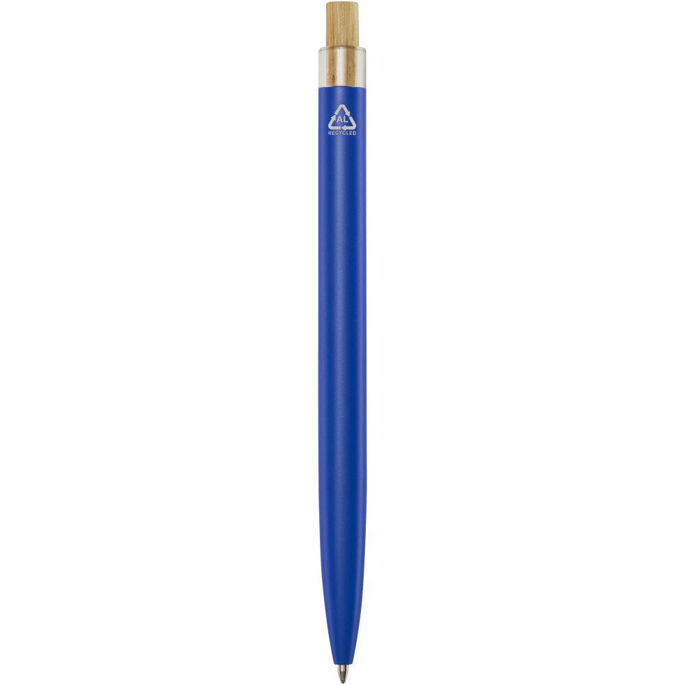 A Nooshin golyóstoll újrahasznosított alumíniumból készül, ami kevesebb energiát igényel, mint az alumínium nyersanyagból történő előállítása. Emellett csökkenti a hulladéklerakókba kerülő hulladék mennyiségét és hozzájárul a természeti erőforrások megőrzéséhez, amelynek célja az üvegházhatású gázok kibocsátásának csökkentése. A nyomógomb bambuszból készült. Tollbetét színe: kék. Íráshossz: 800 méter. Tollhegy mérete: 1,00 mm. Emblémázás: Gravírozás