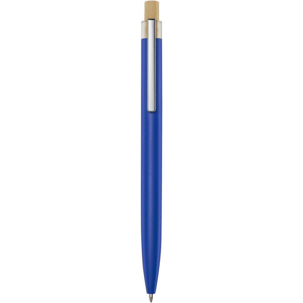 A Nooshin golyóstoll újrahasznosított alumíniumból készül, ami kevesebb energiát igényel, mint az alumínium nyersanyagból történő előállítása. Emellett csökkenti a hulladéklerakókba kerülő hulladék mennyiségét és hozzájárul a természeti erőforrások megőrzéséhez, amelynek célja az üvegházhatású gázok kibocsátásának csökkentése. A nyomógomb bambuszból készült. Tollbetét színe: fekete. Íráshossz: 800 méter. Tollhegy mérete: 1,00 mm. Emblémázás: Gravírozás