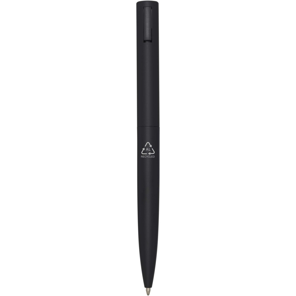 Golyóstoll, melynek felső teste újrahasznosított műanyagból, alsó része pedig újrahasznosított alumíniumból készült. A klipsz vasból készült. Fekete tollbetéttel. Írási hossz: 1000 méter. Hegyméret: 1,0 mm. Emblémázás: Gravírozás