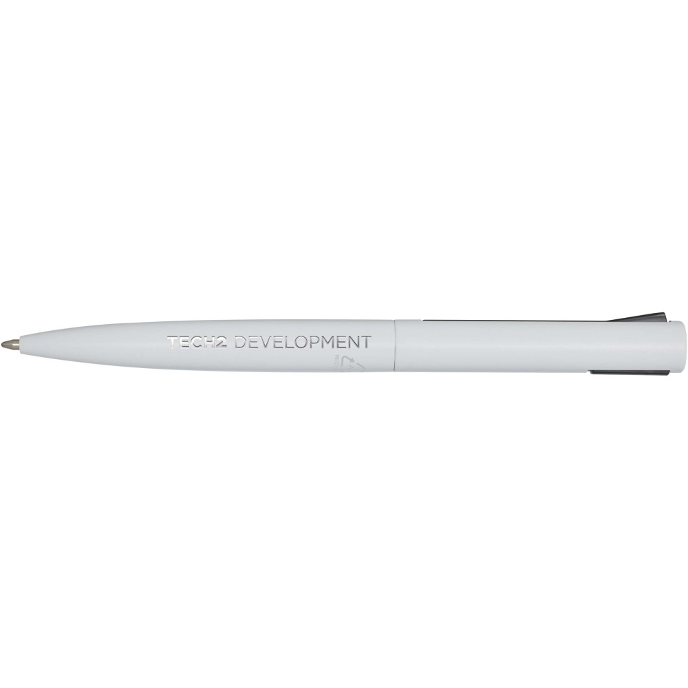 Golyóstoll, melynek felső teste újrahasznosított műanyagból, alsó része pedig újrahasznosított alumíniumból készült. A klipsz vasból készült. Kék tollbetéttel. Írási hossz: 1000 méter. Hegyméret: 1,0 mm. Emblémázás: Gravírozás