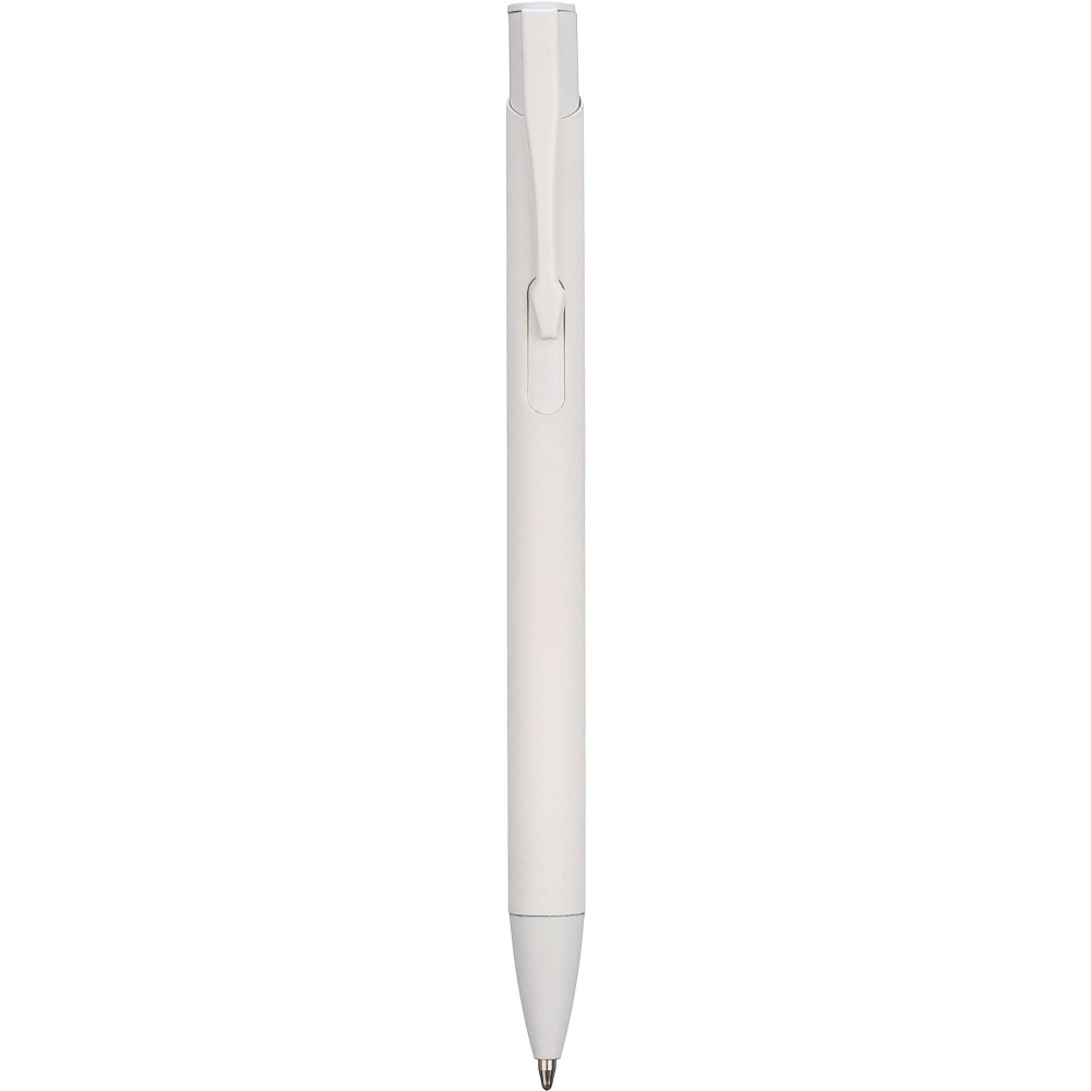 Újrahasznosított alumíniumból készült golyóstoll gumírozott bevonattal a tolltesten. A klipsz, a tollhegy és a nyomógomb azonos színű. A klipsz fémből, a tollhegy műanyagból készült. Kb. 800 méter íráshossz. Gravírozott újrahasznosított alumíniumra utaló logóval. Kék tollbetéttel. Emblémázás: Gravírozás