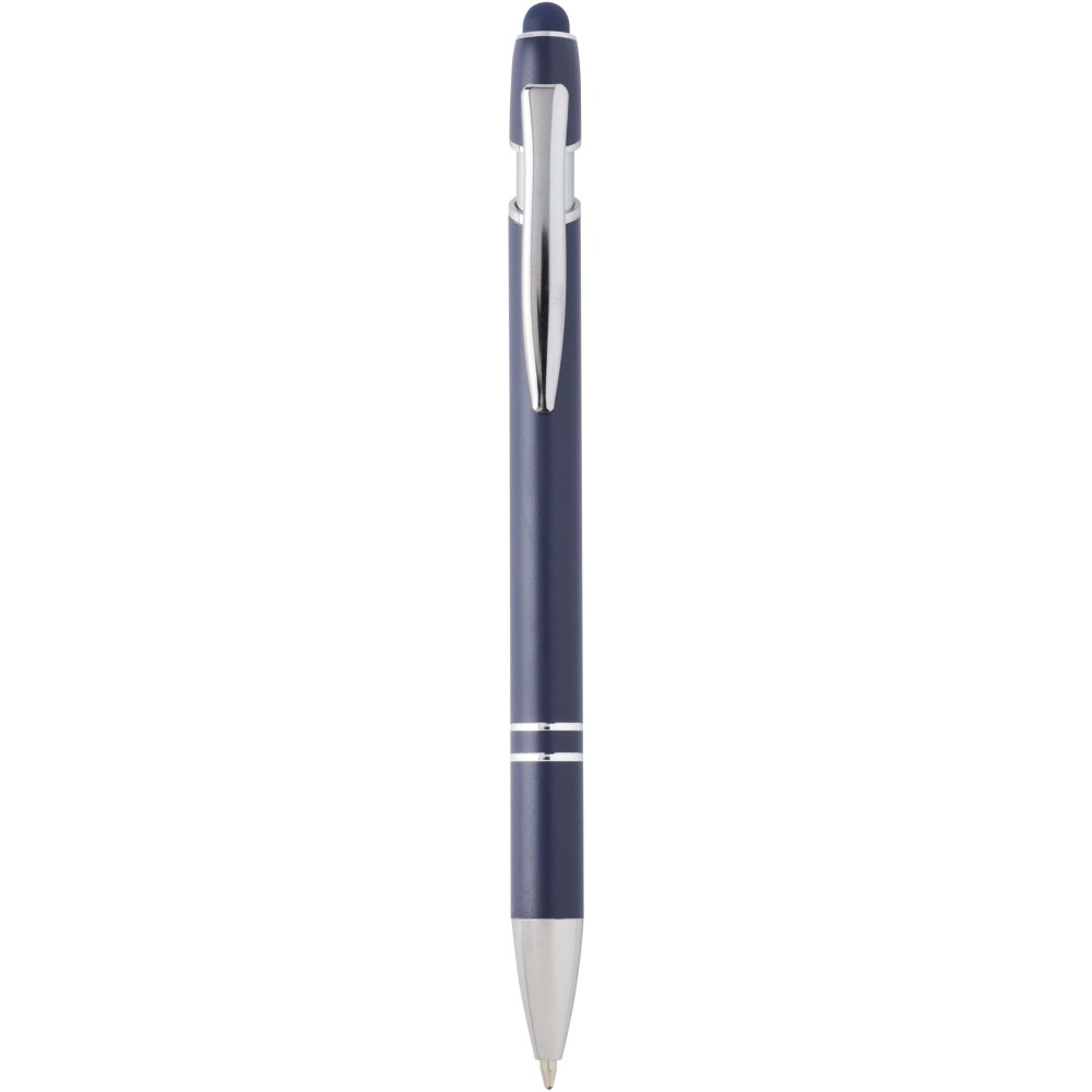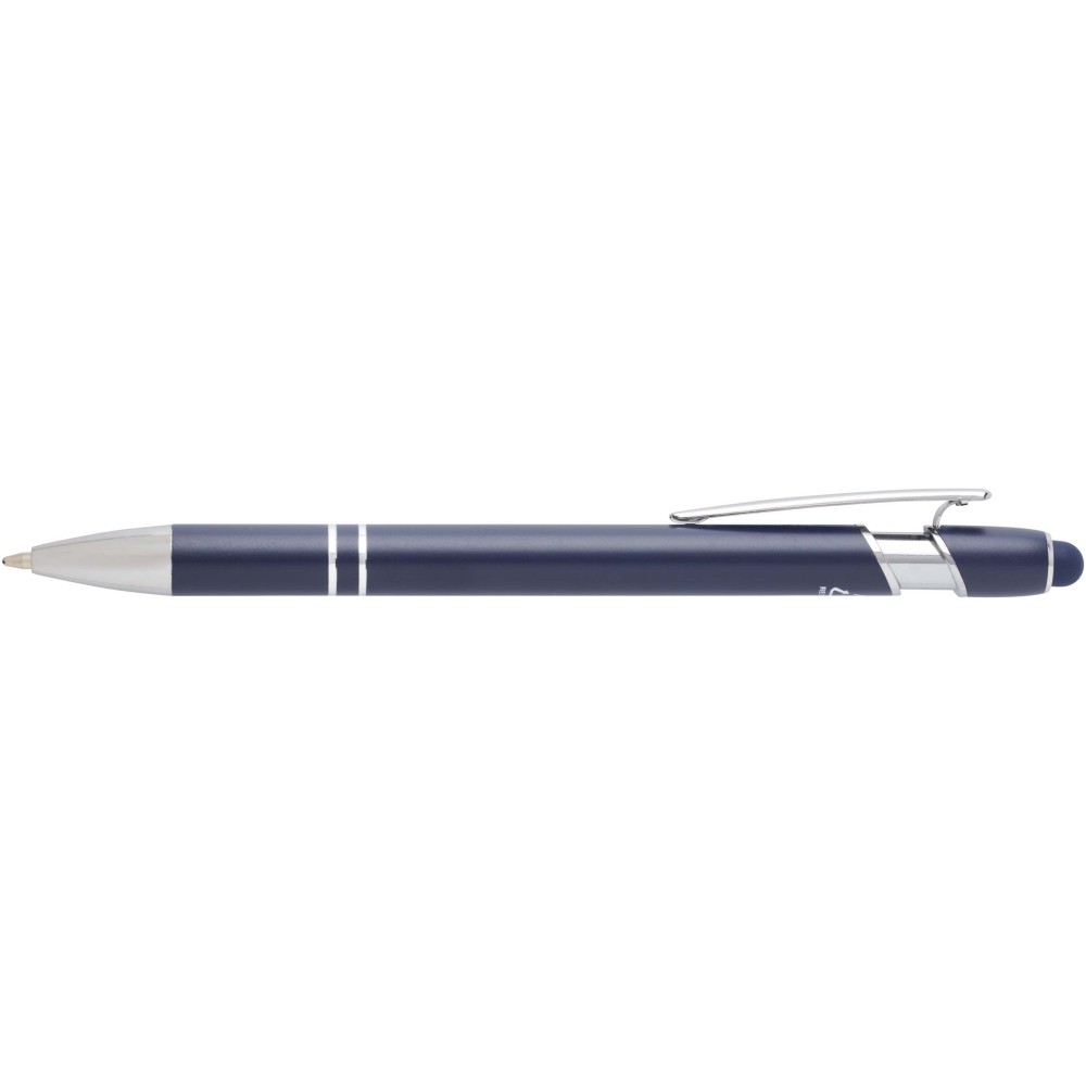 A Kish golyóstoll ezüst bevonattal újrahasznosított alumíniumból készült tolltesttel és szilikon, érintőképernyős véggel rendelkezik. Az újrahasznosított alumínium csökkenti a hulladék mennyiségét a lerakókban, hozzájárul a természeti erőforrások megőrzéséhez és a károsanyag-kibocsátás mérsékléséhez. Tinta színe: fekete. Íráshossz: 800 méter. Tollhegy mérete: 1,0 mm. Emblémázás: Gravírozás