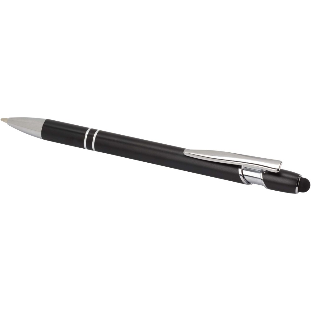 A Kish golyóstoll ezüst bevonattal újrahasznosított alumíniumból készült tolltesttel és szilikon, érintőképernyős véggel rendelkezik. Az újrahasznosított alumínium csökkenti a hulladék mennyiségét a lerakókban, hozzájárul a természeti erőforrások megőrzéséhez és a károsanyag-kibocsátás mérsékléséhez. Tinta színe: fekete. Íráshossz: 800 méter. Tollhegy mérete: 1,0 mm. Emblémázás: Gravírozás