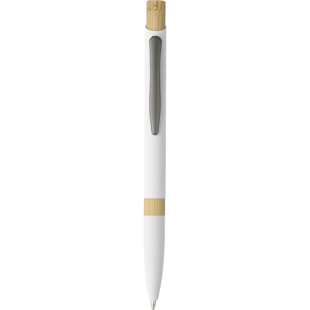 Golyóstoll újrahasznosított alumíniumból, gumírozott bevonattal, bambusz nyomógombbal és bambusz gyűrűvel a tolltesten. Kék tollbetéttel. A tollhegy vastagsága 1.0 mm, íráshossz: kb. 800 méter. Az újrahasznosított anyagra utaló logó a tollra van gravírozva. Emblémázás: Gravírozás