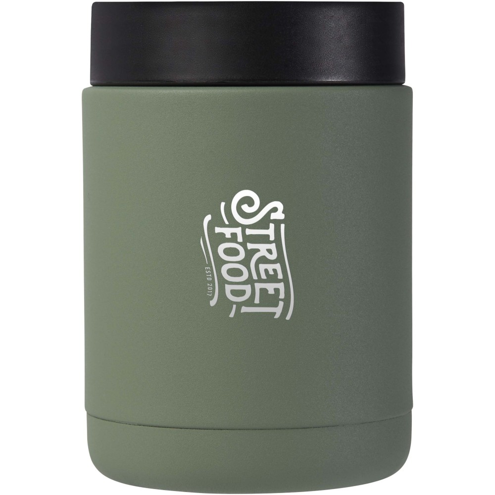 A Doveron duplafalú vákuumszigetelt ételtartó edény újrahasznosított rozsdamentes acélból készült, így fenntarthatóbb választás a műanyag és egyszer használatos ételtárolókkal szemben. Az ételt körülbelül 8 órán át melegen, vagy körülbelül 24 órán át hidegen tartja. Minden edény újrahasznosított műanyag tasakba, majd újrahasznosított kraftpapír dobozba kerül. Nem alkalmas mosogatógépben mosogatásra vagy mikrohullámú sütőben való melegítésre. Űrtartalom: 500 ml. Emblémázás: Bögredekor, Gravírozás, Tamponnyomás